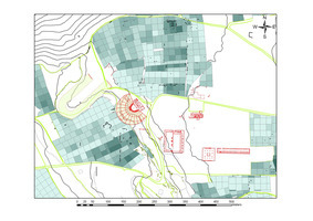 Planning of the excavated monuments in the agora (the temple and overlying basilica, the stoa, palaestra and bouleuterion) progressed (Fig. 2), and many of the ancient quarries, architectural remains and geological features were mapped. Magnetometry was undertaken at selected locations on the plateau, notably the (as yet unexcavated) stadium (Fig. 3): the track is estimated as 28m wide and 198m long.