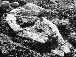 Two caves were found on the hill of Daouli or Polemistres. The entrance to the larger was closed with an Ottoman wall within which were two rows of crenels; much of the interior was occupied with three rows of unworked stones and brick. The second cave, slightly higher up, contained a well. These remains, plus the local toponym Braibi, attest to the passage through this area of Ibraim during his Peloponnesian campaign in 1825. On the hill of Ag. Nikolaos (Tsolor), where the road runs parallel to the Inachos river, one of the pillars of the Hadrianic acqueduct was cleaned (Fig. 1). A few metres west of the hill at Pleta, a large mortarium was found in the olive grove of A. Nassi.