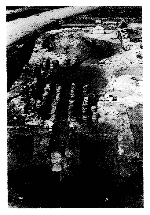 En 1990, une fouille d'urgence a permis de dégager six pièces d'un complexe thermal daté du ΙIe s. ap. J.-C. (fig. 1) : salle de repos pavée d'une mosaïque à motifs géométriques, tepidarium avec hypocauste et praefurnium, caldarium, frigidarium avec piscina — sur le sol, une statuette en marbre d'Asklépios — , laconicum (?).