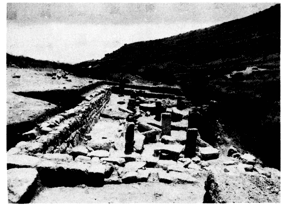 Au lieu-dit Katô Langos sto Sphakoryako, à l'endroit connu sous le nom d'Orthès Pétrès à cause des grands blocs qui y dépassent du sol, on avait reconnu en 1978 un vaste habitat minoen. On y a mis au jour, à la suite de fouilles clandestines, un grand bâtiment rectangulaire (fig. 152), dont le long côté oriental mesure 14 m. Le long des murs Nord et Est courait une banquette. Douze colonnes et piliers monolithes, de 0,75-1 m de haut, ont été découverts in situ à l'intérieur du bâtiment, sur trois rangées parallèles aux longs côtés. On a découvert des mortiers, un outil rond en pierre de 1,20 m de diamètre (peut-être un pressoir), entouré d'une colonne monolithe et de trois piliers.