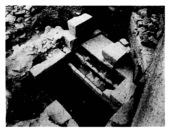 Secteur Ouest de la ville. — La fouille d'un terrain au Nord-Ouest de la ville, dans une zone en dehors et à distance de la ville hellénistique, a mis au jour l'angle d'un bâtiment romain, à l'intérieur duquel un puits carré de 1,10 m de côté était rempli de tessons de céramique commune de la Basse-Antiquité. La trouvaille présente surtout un intérêt topographique puisqu'elle indique l'extension de la ville à l'époque romaine.