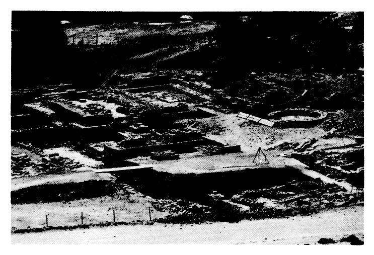 À l'Est et au Sud du sanctuaire grec, d'autre part, on a poursuivi le dégagement du Bâtiment F, du Ve s. av. J.-C. On a mis au jour un bâtiment du Géométrique Moyen contemporain du temple B, dans le sol duquel des dépôts ont livré de nombreuses pointes de javelot en fer et une abondante céramique. Au Sud-Ouest, un monument hellénistique carré pourrait être contemporain du temple C.