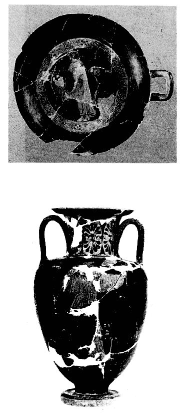 — des travaux pour l'installation de lignes téléphoniques au lieu-dit Papavagélinou, entre Myloi et Mavratzéoi, ont mis au jour une petite toumba couvrant des tombes de types divers et peut-être de dates différentes. Une petite investigation a mis au jour trois sarcophages et, dans le voisinage, des tombes à tuiles et en fosse. Deux des sarcophages ont livré des vases à figures rouges d'excellente qualité – surtout des coupes et des amphores –, uniques à Samos (fig. 131-132). ArchDelt 43 (1988) [1993], B'2, p. 487-490.
