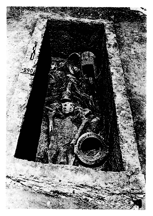 La XVIe Éphorie des Antiquités préhistoriques et classiques a poursuivi en 1985 la fouille de la nécropole archaïque (fig. 1), où ont été dégagées 123 tombes, réparties en 108 tombes à ciste, sept tombes en fosse, six sarcophages monolithes (fig. 2) et deux sépultures en jarre. Les trouvailles sont, comme dans les fouilles précédentes, constituées d'armes en fer et en bronze, de bijoux de bronze, d'argent et d'or, de vases attiques, corinthiens, ioniens.