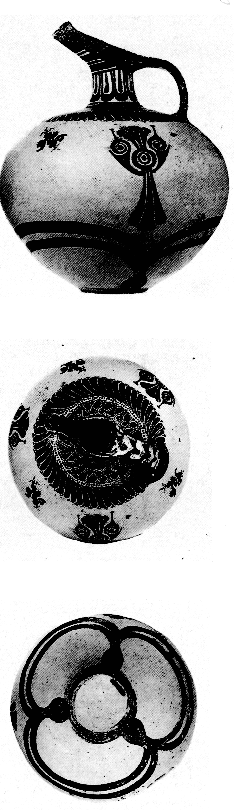 Le matériel de 20 des 321 tombes découvertes entre 1981 et 1988 au cours des travaux d'installation du réseau hydraulique, dans le quartier de Néa Ionia (cf. déjà BCH 113 [1989], Chron., p. 635 ; 114 [1990], Chron., p. 774 ; 115 [1991], Chron., p. 887), est publié par A. Baziou-Efstathiou, ArchDelt 40 (1985) [1991], Mél., p. 17-70. Ces tombes, à ciste pour la plupart, datent de l'ΗΑ et de l'époque mycénienne. Les offrandes, remarquablement variées, y comptent des vases — dont la prochous à col renversé de la fig. 1, des armes et outils de bronze, des bijoux et des boutons en terre cuite ou en pierre. On trouve en appendice à l'article un rapport de R.E. Jones sur les analyses d'argile.