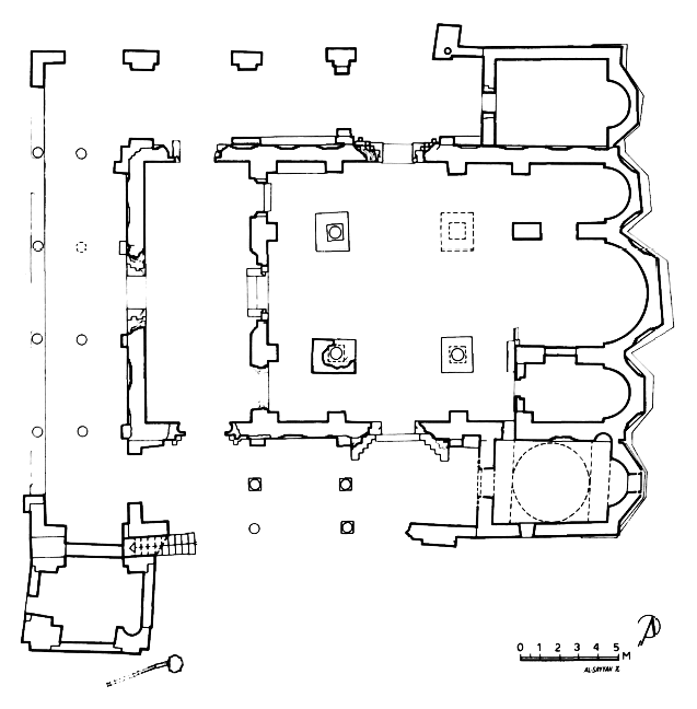 Les recherches menées en 1991 au monastère de Pantanassa par P. Vokotopoulos permettent d'affirmer que la stoa Ouest était entièrement soutenue par une colonnade (fig. 1). À l'Ouest de la stoa, on a poursuivi le dégagement du dallage irrégulier sur lequel se dressait probablement la phiale. Un fragment de fresque (feuilles blanches sur fond bleu nuit) est conservé dans l'abside. Au Sud de la chapelle Sud, une tranchée a dégagé plusieurs tombes à ciste, du début du XIXe s. La céramique décorée recueillie en 1991, produite par des ateliers d'Arta, date du XIIIe-XIVe s. et du XVIe s.