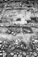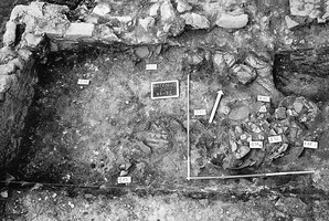 A quantity of slag of varying sizes was found in a destruction deposit with roof tile in the east of the plot. There must have been a workshop in the area, though remains of the structure have yet to be located.