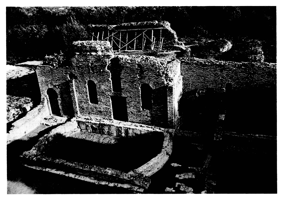 Dans le cadre d'un projet de collaboration avec l'Université de Karlsruhe pour la conservation des constructions d'époque impériale, on a commencé en 1991 la consolidation des murs de briques, des enduits muraux et des sols de marbre et de mosaïque (fig. 4).