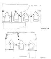 This burial was dated to first century A.D. and was in use at least at the end of second century A.D. Inside the burial chamber, the walls were decorated with arched conchs (cubiculi). Three larnaxes were revealed, arranged in a Π shape, in a deeper level of the chamber-burial.
