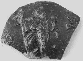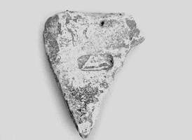 Parts of the fortification wall NW of tower 7 were examined. The wall had a surface of large carved blocks and was filled with rubble masonry. A tile was found, inscribed with the initials ΔΑ(ΜΟΣΙΟΥ) (Fig. 1).