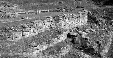 Excavation continued on the North Stoa to expose the south euthynteria. The removal of the surface stratum in the W part of the stoa revealed a destruction layer and the bedrock under the foundations.