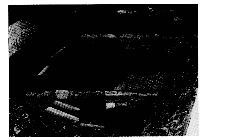 — quelques-uns des murs de cinq bâtiments, dont le plus ancien remonte à l'époque classique, rue Chr. Moraïti 41 ; le bâtiment de la phase suivante (IVe s. av. J.-C.) comprenait deux chambres souterraines mitoyennes, de 5,70 x 5 m, dont l'appareil des murs est composé de blocs de poros séparés par des portions construites en petites pierres (fig. 3) ; l'une des deux chambres a conservé son sol dallé et deux colonnes monolithes, de section carrée, en calcaire coquillier; les phases ultérieures de l'édifice datent du Bas-Empire (citerne et puits) et de l'époque byzantine ;