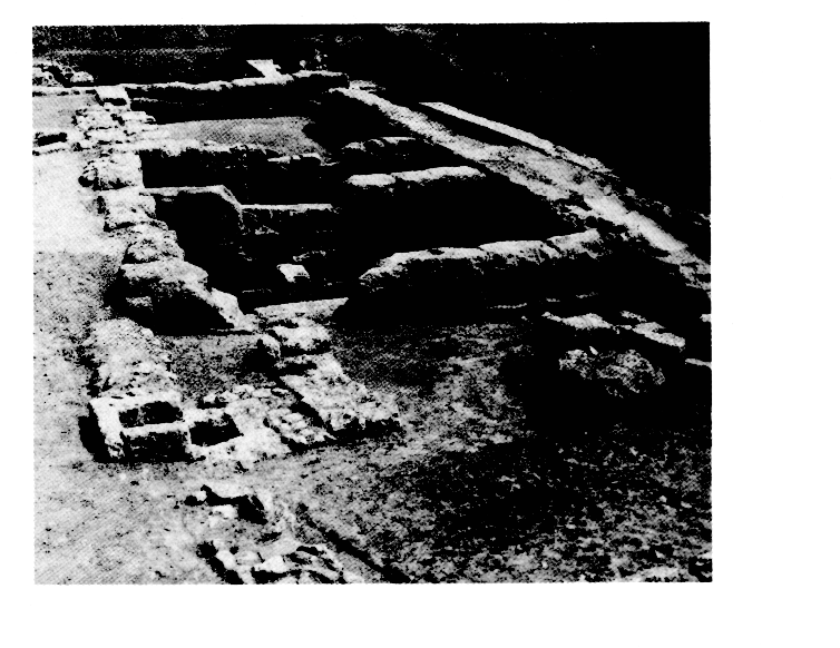 — trois pièces de la partie occidentale d'un édifice du Bas-Empire ou du début de l'époque protobyzantine (rue du 28 Octobre) : les murs d'une cour pavée supportaient probablement un étage; une entrée souterraine était surmontée d'un linteau en briques voûté ;