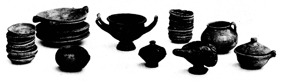 Vraisemblablement construit au début du IVe s. av. J.-C., le bâtiment Y2 fut, après un remaniement, détruit dans le 3e quart du IVe s. av. J.-C., pour être reconstruit peu de temps après. Dans la couche de destruction et sous le sol de l'édifice postérieur Y3 on a découvert deux foyers, sans aucun doute des offrandes de fondation, qui ont livré une abondante vaisselle du 3e quart du IVe s. av. J.-C. (fig. 2) : une trentaine de vases, parmi lesquels des assiettes, des tasses, ainsi qu'un canthare, une pyxis et une lampe, étaient empilés dans les petites fosses ovales. Le bâtiment Y3 a été doté, au 3e quart du IVe s. av. J.-C., d'un nouveau mur extérieur, dont des vestiges sont conservés ; il ne reste en revanche rien des murs intérieurs.