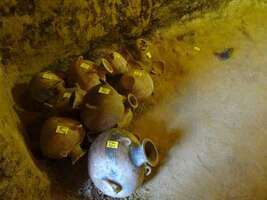Among the finds there was pottery, glass pieces, stone beads, gold and bronze jewellery and bronze weaponry. The graves were dated between LH IIIA–IIIC. They were also used in the sub-Mycenaean period.