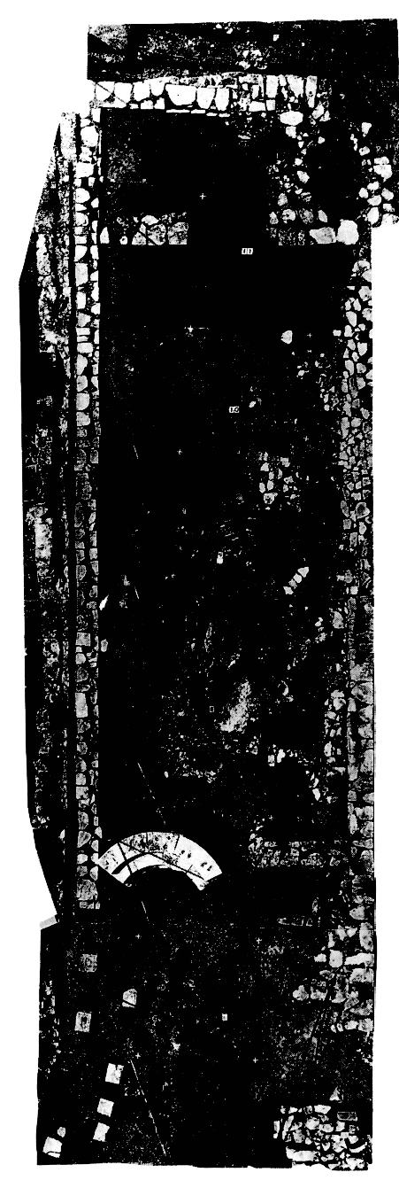 1) Σκανά (logement des prêtres). — La σκανά comportait un lieu de culte, constitué d'un sékos, d'un prodomos et de deux pièces attenantes. Les pièces privées comprenaient une cage d'escalier, preuve de l'existence d'un étage ; dans un second état (IIIe s. ap. J.-C), un vestibule fut rajouté à l'entrée. À côté du sékos, sur le sol duquel de l'eau coulait d'une canalisation, se trouvait un bain avec couloir voûté (fig. 19). De nombreux fragments de tuiles timbrées au nom du sénateur Antonin permettent de dater la construction du bâtiment du IIe s. ap. J.-C. Il reposait en partie sur des vestiges hellénistiques.