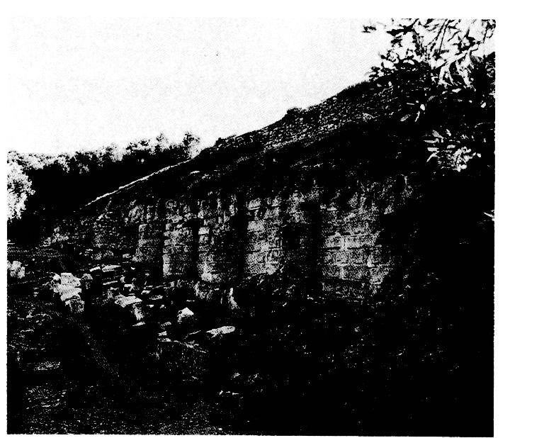3) Citerne d'Antonin. — On a nettoyé l'embouchure et le canal d'évacuation. Sous l'escalier, un petit bassin recueillait les déchets et l'eau s'écoulait, par un orifice dont un mécanisme commandait le débit, dans une canalisation de 0,45 m de large, qui suivait ensuite la fondation Ouest de la σκανά. Au fond de cette canalisation, de petits bûchers et des dépôts d'ossements animaux et de lampes du Bas-Empire indiquent qu'à cette époque la canalisation était utilisée comme fosse pour des cérémonies à mystère.