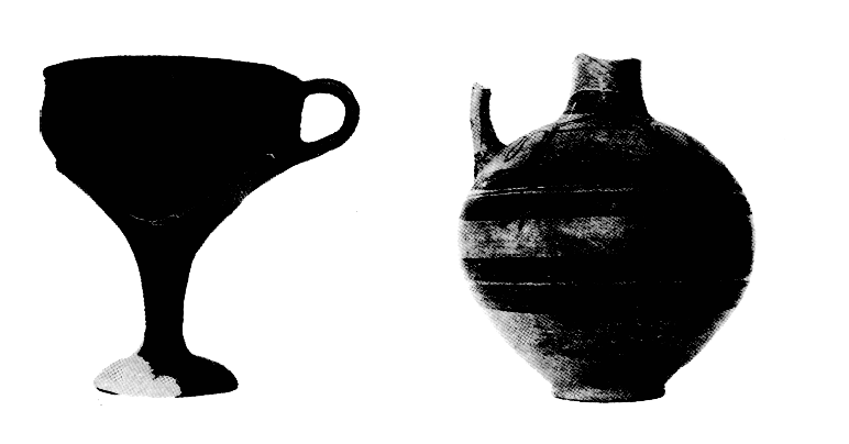 Deux autres tombes à tholos ont été fouillées de part et d'autre de la grande tombe : l'une avait été réoccupée, peut-être à l'époque byzantine, puisqu'on a découvert un petit trésor de monnaies byzantines dans l'entrée. Cinq fosses creusées dans le sol ont livré des ossements et des offrandes, dont quelques vases de l'HR IIIΒ (fig. 2-3). Les recherches entreprises sur la colline de Paliokastro afin de localiser la demeure du prince dont dépendaient les tombes n'ont actuellement livré que des traces d'occupation HA et médiévales.