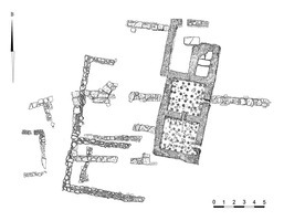 South of the national road and 300m from the junction to Dramesi, part of an Early Christian basilica was uncovered (Fig. 4). After the abandonment of this building in the Middle Byzantine period, the area was used as a cemetery and a small funerary chapel was built: 12 Byzantine cist graves contained limited grave goods.