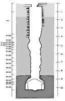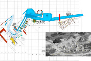 La fouille de la citerne (secteur Nord du rempart). – La campagne de 2008 visait à déterminer la fonction d’un dispositif situé entre les maisons du secteur 3 et la muraille Nord (resp. : P. Aupert) (fig. 1). Dans la zone supérieure, le conduit vertical de plan carré (ca 1,55 x 1,65 m) a été habillé de quatre murs en pierres sèches ; plus bas, il est percé en cylindre dans une roche tendre ; dans la partie inférieure, la roche dure est atteinte et la cavité s’élargit et le plan devient oblong (fig. 2). La stratigraphie montre à la fois l’accumulation lente de matériel et la perturbation du dépôt due à des opérations de nettoyage. La première utilisation du dispositif pourrait remonter aux environs de 300 av. n.è. ; une utilisation à l’époque hellénistique est en tout cas assurée ; la durée d’utilisation présente ensuite une grande lacune entre les IIIe et VIIe s. de n.è.