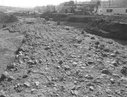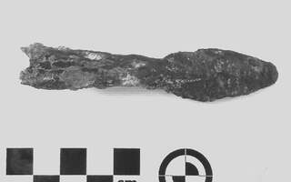 An ancient street was found near the elephant’s remains, oriented NW-SE. The street was downward and it was built with coarse stones and pebbles (fig. 2). The area was excavated and the pottery found was mostly cookingware and black painted sherds, dated in the Archaic and Classical times. Other findings included an iron spear head (fig. 3) and loomweights.