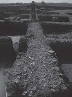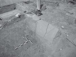 Ancient Ilia. Georgia Em. Hatzi (Z’ ΕΠΚΑ) reports on the continuation of the excavation at this site (Figs. 1 - 3). Part of a column, fragments of roof-tiles and sherds were collected as well as fragments of red and grey marble, which must have been parts of the internal lining of the walls with marble. Furthermore, a destruction layer and a wall made from spolia were located (Figs. 4 - 5).