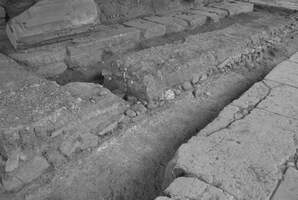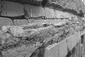 The temple was fully excavated, and it was made clear that many of the architectural remains used during its construction were spolia. Many prehistoric pottery sherds were revealed upon the removal of the filling of the S side pteron. The trench opened in the area revealed the foundation of the temple. According to the findings in the foundation ditch, the building was founded in the second half of eighth century BC (fig. 1). A corner of the previous building built in the area, dated in the Geometric times, was found under the W side of the pteron (figs. 2, 3).