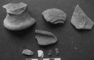 Most of the findings dated in the Classical, Hellenistic and Roman times were pottery sherds, but the excavation yielded some stone tools, amongst which were obsidian blades, dated in the Helladic times (fig. 3 – 5).