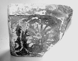 The building was thought to be a streetside sanctuary of Artemis, as mentioned by Pausanias (near Oresteion, on the road between Megalopoli and Palladium). The foundations were formed by large, worked stones on the outside and unworked stones on the inside, and they formed a rectangular plan (fig. 3). The destruction layer of the roof revealed a bronze coin from Tegea, dated during the first half of the fourth century BC (obv. head of Athena, rev. owl), as well as a sherd of Archaic painter pottery (sixth century BC). The building’s public character was evident due to its large dimensions, and the architectural members forming the roof, such as the floral antefix and part of the seme, decorated with painted floral patterns (fig. 4).