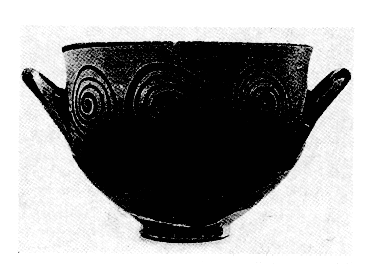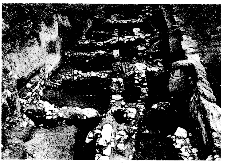 Au Nord, on a fouillé deux tombes et une couche de destruction, au-dessus de murs HM orientés Est-Ouest, et dégagé plusieurs pièces d'un troisième bâtiment (III) d'époque mycénienne (fig. 1) ; mesurant 11,80 m x 3,70 m, il est constitué de trois pièces (Z1 [2,80 x 3,70 m], Ζ2 [2,25 x 3,70 m], et H1 + H2 [3,70 x 4 m]), dont l'une a été ultérieurement divisée en deux. Une baignoire était incorporée dans le sol de la pièce Ζ1. La céramique y date de l'HR III B2. De nombreux vases (coupes, skyphoi [fig. 2], amphores à étrier, stamnoi ...) ont été retrouvés dans la pièce Ζ2, avec un grand nombre de boutons de stéatite, outils en os, fragments de plaquettes en ivoire, figurines, coquillages, obsidiennes et fragments de plomb fondu. Cette pièce a surtout livré un ensemble exceptionnel de soixante nodules, retrouvés le long des côtés Ouest et Sud, dans la couche de destruction : il s'agit de nodules à trois faces, portant une empreinte de sceau ou de bague. Les représentations constituent vingt-trois empreintes différentes ; 55 (ou 56 ?) nodules portent des idéogrammes d'animaux et des signes en linéaire Β ; sur ces inscriptions, cf. le commentaire épigraphique, paléographique et philologique, et les tentatives d'interprétation, dans l'article de Chr. Pitéros, J.-L. Melena et J.-P. Olivier, BCH 114 (1990), p. 103-184. Dans la pièce Ζ1 se trouvait le seuil en pierre constituant l'entrée du bâtiment. Dans la pièce H1 + H2, on a trouvé des pilons, des obsidiennes, des fragments de fresques ... Le bâtiment III devait être un atelier. La première phase de la construction remonte à l'HR IIIΒ1 ; détruit par un violent incendie, il a rapidement été reconstruit et utilisé jusqu'à la fin de l'HR IIIB, où il subit un second incendie. II est longé, au Sud, par un second couloir dallé.