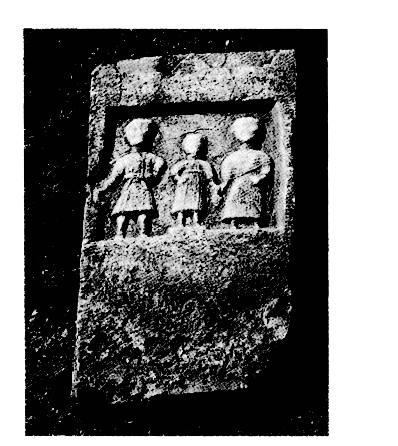 — six tombes du Bas-Empire (angle des rues Emmanouilidou et Patriarchou Vassileiou), 41 tombes (à ciste, en fosse, à tuiles, en jarres) d'époque impériale (angle des rues 30 Iouliou et Christaki) ; 25 tombes du Bas-Empire de types divers (terrain Dragoumi) ; quatre tombes, dont deux doubles tombes voûtées (rue Aghiou Georghiou) ; signalons aussi la stèle funéraire de la fig. 1, provenant d'une tombe voûtée de la rue Vénizélou, et celle de la fig. 2, où sont représentés un homme tenant une faucille et des épis de blé, une femme, et un enfant tenant une grappe de raisin, découverte remployée en couverture d'une tombe rue Papagos ;