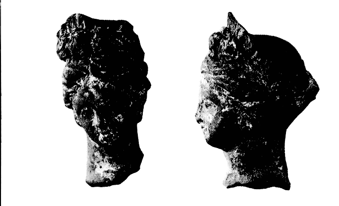 2) dans la rue Phérôn, des vestiges hellénistiques (d'où provient la tête de figurine illustrée fig. 1) reposant sur des couches de l'Âge du Bronze et des périodes protogéométrique et classique, ainsi qu'un mur d'analemma protégeant une rue située à l'emplacement de l'actuelle rue Phérôn et dont les chaussées successives en gravillons et fragments de tuiles ont été utilisées de l'époque classique au début de l'époque impériale, et soutenant une terrasse sur laquelle était installé un bâtiment hellénistique — parmi les trouvailles, une anse d'amphore timbrée (fig. 2) — abritant un atelier (?) ;