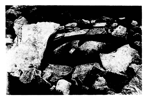 Une fouille menée au lieu-dit Aî-Yannis a mis au jour 28 tombes d'une nécropole de l'Âge du Fer, où les inhumations sont très rapprochées : 26 d'entre elles étaient en pithos (fig. 109), une en larnax et une en amphore. Des rares offrandes, nous illustrons deux vases (fig. 110). Tous les corps avaient été posés sur une épaisse couche d'écorce de pin (?). Un four céramique fut installé sur le site à une époque postérieure (fig. 111). ArchDelt 39 (1984) [1989], Chron., p. 224.