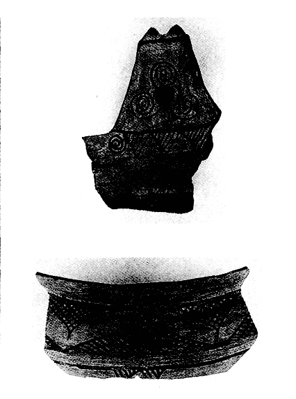 Au sommet de la toumba Chadzinôta, de 100 m de diamètre, on a dégagé les vestiges d'un bâtiment d'époque impériale ; plusieurs tranchées ouvertes sur les pentes ont livré, en dehors de quatre tombes du Bas-Empire ou de l'époque paléochrétienne, de la céramique de l'Âge du Bronze, de diverses catégories : grossière, fine monochrome et fine décorée, de très belle qualité — dont un grand pourcentage de céramique grise, à décor généralement brun, dont les motifs les plus fréquents sont les triangles et les spirales (fig. 1). Une céramique semblable a été recueillie à Kastana dans des couches du Bronze récent.