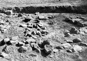 Marathon, Boriza. Trial trenches were undertaken on Athinon-Marathonos Street (Katsagoni property) where building remains of Final Neolithic or EHI had previously been excavated in a neighbouring plot (ADelt 50 [1995] Chr, 64−66). These remains are now seen to form part of a larger structure which extends to the north (Fig .1). Stone foundations of a square building were found, with traces of two small round stone bases for wooden columns, shell, obsidian, and Late Neolithic pottery.