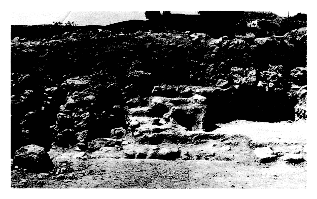 Sur la colline Nord-Est, au Nord des bâtiments G et H, on cherchait les limites de la ville minoenne : un large mur de péribole, fondé sur une épaisse couche de remblai constitué de pierre concassée mêlée de céramique et de fragments d'outils en pierre, de pesons et d'ossements animaux, reste indaté. Sous le remblai, on a mis au jour le mur Nord d'une pièce d'époque paléopalatiale, avec sol de terre battue sur lequel étaient posées deux plaques servant de sièges ou de surfaces de travail. Au Sud du mur de soutènement qui avait été construit sur les ruines du mur Sud de la pièce passait la rue dallée Nord de la ville néopalatiale. Ergon (1990) [1991], p. 127-132.