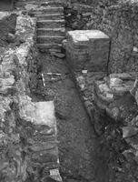 At the SE end of the plot, a long alleyway was excavated (fig. 1), measuring 7.50 x 2m, and with a staircase at its W end. This space separates two buildings, one of which covered an area 160 sq.m (fig. 2).