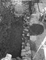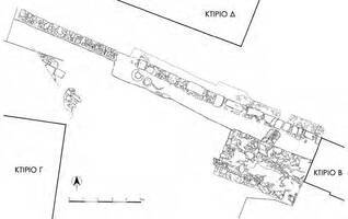 In the outdoor space between buildings C-B and D, a Late Roman wall was discovered, along with domestic remains of post-Byzantine periods. A vaulted cistern was also found, and three pithoi, also post-Byzantine in date.