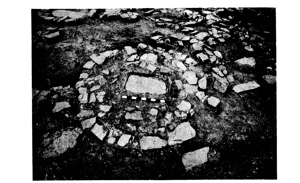 Deux tumuli ont été fouillés, en 1980, près de la frontière bulgare, aux lieux-dits Dikella et Skopia. Ils recouvraient un ou plusieurs monuments mégalithiques, entourés d'une plate-forme ronde ou ovale en pierre (fig. 1). Les tombes sont de trois types : dolmens à ouverture latérale (IXe s. av. J.-C.), cistes avec sépulture à crémation (VIIIe s. av. J.-C.), fosses à crémation ou vases cinéraires (VIIe s. av. J.-C.). Les premières contenaient de la céramique cannelée (fig. 2), les secondes de la céramique à motifs géométriques imprimés (fig. 3) ou incisés, les troisièmes des poignards et des pointes de lance en fer.