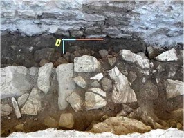In 2015, during work for the “Restoration of the Church of the New Monastery of Voulkano” project, trial trenches were dug close to the foundations of the monastery church, revealing, at a relatively small depth, architectural remains of the Early Bronze Age, which had been partially destroyed by the construction of the church in the early 18th century. Located on a plateau on the eastern slope of Mount Eva, the site controls the Makaria plain as well as the Messenian and Arcadian mountain ranges. Situated near a water source, this newly identified Early Helladic site supervised the fertile plain and functioned as an observatory, dominating the surrounding area. Excavations brought to light the stone foundations of a building constructed of large and smaller semi-worked stones. The associated pottery comprises EH II pithoi and coarse wares. A clay bull figurine suggests religious practices and reflects the livestock-based economy of the EH II period. Future research will probably reveal more similar sites in Messenia, belonging to a period of population growth and settlement expansion.