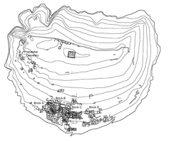 Mochlos. J. Soles (ASCSA/North Carolina) and C. Davaras (Athens) report on a new excavation, aimed at the discovery of earlier, especially Prepalatial, remains under the Neopalatial settlement, exploration of the northern limits of the LMIB town and the completion of partly excavated areas. A new map of the whole site in all its phases was begun using a Differential GPS system (Fig. 1). Work below LMI levels across the site has identified parts of six Prepalatial houses and three streets in what seems to be an open-plan arrangement. In 2005 a workshop for stone vases was recovered; in 2009 an obsidian blade workshop was sampled below a LMI artisan centre (C.7). The latter has evidence for metalworking in gold: a small crucible, a gold strip fragment (like those from the Prepalatial cemetery) and two small bronze tools (one a punch capable of making dot repousse work). EMIII, MMII, LMI and Hellenistic levels made a wider appreciation difficult. Other isolated pockets of EMII were uncovered: all revealed a broad destruction horizon at the end of EMIIB. Three MMIIIA houses were recovered, two of which lay under the terrace in front of the LMIB Ceremonial Building (B.2), the main approach route from the Neopalatial settlement to a sunken shrine at its southwest corner. Remains of two people were identified here in 2008; it is believed to have been a centre of feasting and of communing with the ancestral dead. The MMIII houses were enclosed deliberately in the terrace and their presence marked by votives left thereon. In themselves, the houses were modest: small rooms and narrow rubble walls suited to single-storey structures. A large hearth lay outside one house, accompanied by a full set of cooking wares, and a three-sided prism (radiating whorl, two standing men and a long saw, a bucranium with horns ‘arrondies’) arguably made by the artisan who worked at the Atelier des Sceaux at Malia. The third MMIIIA house lay to the north of block C, on an extension of the main north-south street separating blocks B and C. After making a sharp turn to the east at the northwest corner of the block, this road turns again, continuing diagonally to the northeast. On the eastern side lay the house, badly damaged in the Hellenistic period. LMI floor levels were removed then; but a MMIIIA floor deposit, with abundant pottery, survived intact, as does its roadside façade. This in turn suggests that the street is of MMIIIA date and that the Neopalatial settlement was laid out at this early period. On the west side of the same road, the well-preserved house C.11 was completely excavated. The house is large, built on bedrock, with no earlier deposits below it. The entrance vestibule has an ashlar bench, an upright ashlar slab, perhaps designed to support a lamp, and a mortar carved from an ashlar block. An interior staircase led from the ground floor both down to a basement level and up to a first storey. It is not yet clear when the house was built, but it was certainly renovated in the LMIB period when ashlar was introduced as a building material on site. Badly plundered at the end of this period, it yielded only a few bronze tools and a stone sword hilt to suggest the wealth of its original contents.
