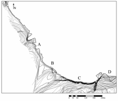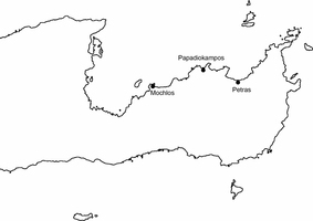 Papadiokambos. Ch. Sophianou (ΚΔ' ΕΠΚΑ) reports on the 2008 season of excavation in the Minoan settlement (Fig. 1), which also produced some Hellenistic finds. House remains have been located along a 250m long stretch of cliff.