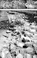 Le mur 1290 s’est révélé être à la fois un leurre et un guide. Un leurre, car il repose sur un mur plus ancien, 1315-1358 (fig. 1b) avec lequel il se confond même en un point. Or la fouille a prouvé sans ambiguïté que ce mur plus ancien qui a été dégagé sur une longueur de 18 m, était, lui, la suite de 284. Un guide, car le tracé que suit 1290 est tantôt celui du mur 1315-1358, tantôt s’en écarte pour épouser celui de la ligne d’érosion des vestiges néolithiques.