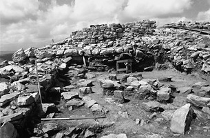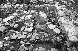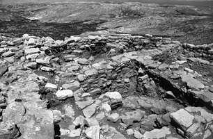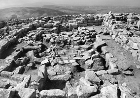 Smari. D. Hatzi-Vallianou (Archaeological Institute of Crete) reports on the 2000 season of excavation at this Bronze Age and Early Iron Age settlement, as well as on environmental studies, geological survey and conservation and presentation of the site as a whole. For references to other comparable and comprehensive annual accounts, see AR 49 (2002-2003), 83. On the upper acropolis, excavation of the central hearth in the main hall of Megaron B was completed and its supporting layers investigated: the stones of the hearth were then restored (Figs 1-2). Megaron Γ (probably a guardhouse) has as its southern and eastern walls the acropolis circuit, and was probably a later addition, built onto the circuit wall. It has two entrances: excavation here revealed six stratified layers over bedrock with sherds, two loomweights, animal bones and seeds. The House of Athena (Fig. 3) yielded Early Minoan and Middle Minoan material below its paved floor and an early level with traces of fire. Numerous rooms were excavated within the acropolis, some attached to the circuit wall, others free-standing. Rough pavements and yard spaces are noted, as are pottery and stone tools. Minoan levels are often noted at lower depths (e.g. area M1 [Figs 4): often dated to MMII (Figs 6-7), they include pithos sherds, conical and carinated cups, jugs, stone tools and stone vases. Outside the acropolis, work continued on Megaron 2B (Fig. 8), east of Megaron Γ and the acropolis circuit wall. A long rectangular form with three doors, it contained sherds and animal bones, stone tools, spindle-whorls and loomweights, as well as three bronze fish-hooks. The floor had charcoal and ash to the west, as did a bench there (Fig. 9): the destruction can be dated to LMIIIC (Figs 10-12). Structures continued to be located on the southern slopes (Fig. 13). Surface survey began in 1977 in a radius of 3km around the modern village, in combination with rescue excavation locating tens of new sites and monuments attesting to continuous exploitation from the Early Minoan period to the present day. In 1999-2000, the survey was extended into the wider area of the demos of Kastelli, with numerous Neolithic to modern sites recorded. Settlements, farmsteads, shrines and churches and cemeteries of Minoan and early historical times were well attested around the modern village and the hill of Profitis Ilias (Fig. 14).