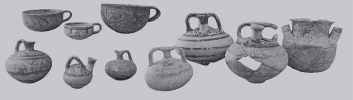 Two pithos burials placed in small pits (40, 42), with one dating to the LM II period, were found along with two chamber tombs. Ten secondary burials (anakomides) were discovered at the E part of Chamber Tomb 1, while four of these burials were covered in limestone for the creation of a new floor. A primary burial with the individual placed in crouched position was detected on top of this floor, with the cranium facing the E. A second primary burial with similar characteristics was unearthed N of the entrance of the tomb. Two more anakomides were located underneath the second primary burial, and based on the various grave goods and 25 vessels (Fig. 2) they can be dated to the LM IIIA2 and the LM IIIB period.
