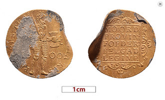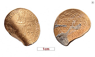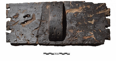 The first sector excavated was on the keel on the N side, aiming to clarify construction details. The connection point of two parts of the keel was located, and metal sheets were found that had covered it, now folded in places, indicative of the fact that the ship was dragged a few metres after sinking until its left side hit the bottom. At this point, between the timber and other wood, parts of the ropes from the ship’s equipment and some of the objects once belonging to the crew were found, including pieces of military uniform, furniture, and a gold ring decorated with flowers and dots. An identical ring had been found in 2019.