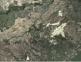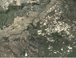 Une prospection pédestre de petite échelle a été effectuée sur une superficie de 60 ha, soit 69 champs et 118 unités de prospection (fig. 1). Cette prospection a été menée comme activité préventive en amont de la construction de panneaux solaires dans la région. Les secteurs ciblés sont une nécropole classique, une zone comportant du mobilier de l’époque romaine tardive, près de Kambos, une magoula avec du mobilier néolithique près de Gogou et les champs autour du village de Kallithea (fig. 2-3).