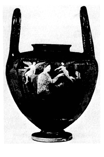 Des tranchées creusées, la même année, par la Compagnie des Eaux dans les rues Alhinôn, Kavalas, Thessalonikis, Larissis, Trikalôn et Serrôn ont d'autre part recoupé plusieurs secteurs de la nécropole classique qui s'étend au pied de la colline de Kastraki. On a nettoyé une vingtaine de tombes (à incinération pour la plupart), achevé le dégagement d'un vaste péribole, et recueilli un certain nombre de vases dont un lébès gamikos du style de Kertch (fig. 12). ArchDelt 34 (1979) [1987] Chron., p. 76-87.