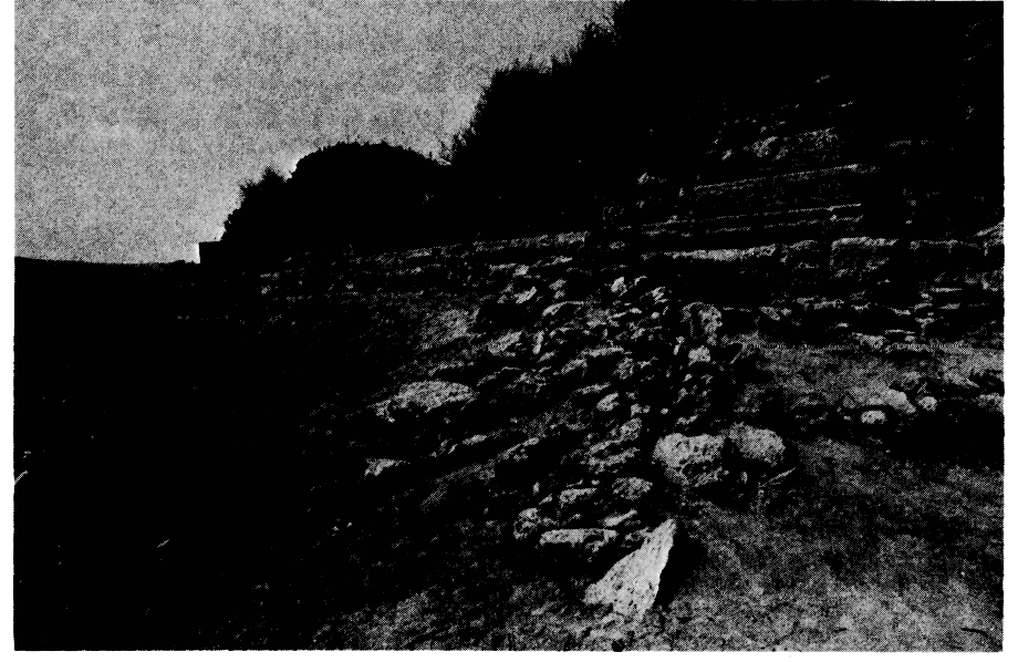 Sur le versant Sud-Est de la colline de Pyrgos, site de l'antique Kynos, on a découvert, en 1979, un long segment du rempart hellénistique, en appareil pseudo-isodome, conservé sur une hauteur maxima de 2,60 m (fig. 56) ; plus bas dans la pente, les vestiges d'un bâtiment mycénien avec foyer ; plus bas encore, deux tombes à ciste HM, qui ont notamment livré un amphorisque monochrome avec marque de potier (fig. 57), et des restes de murs de la même époque. ArchDelt 34 (1979) [1987] Chron., p. 186-187.