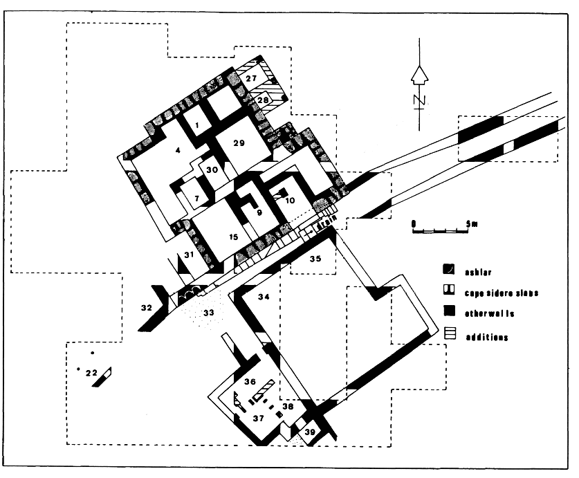 En 1987, au cours de la seconde campagne dirigée par L. Sackett et J. MacGillivray, l'exploration du bâtiment 1 et des constructions avoisinantes a été poursuivie.